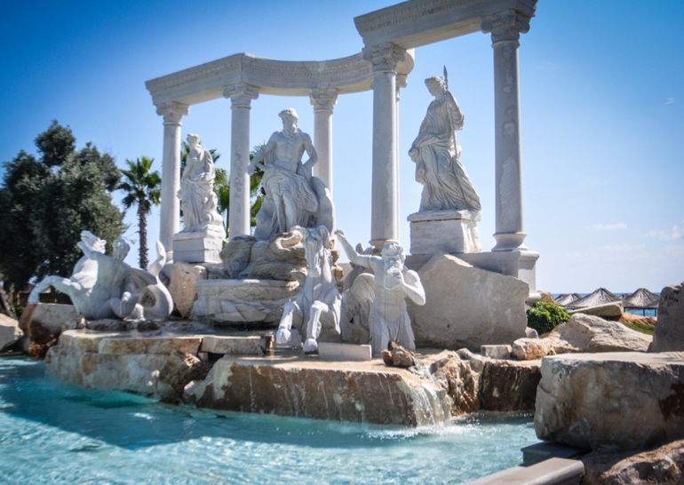 По территории статуи есть, фонтан с гречес.скульптурами - очень красивый! Напротив прям Альва Арены. Гамаки встречаются - очень удобно и классно поваляться в них.