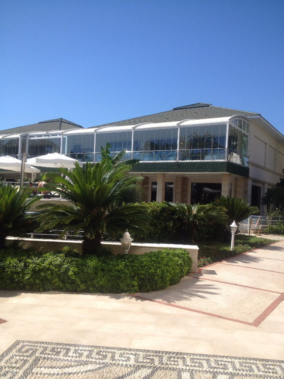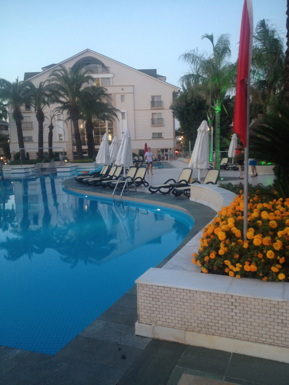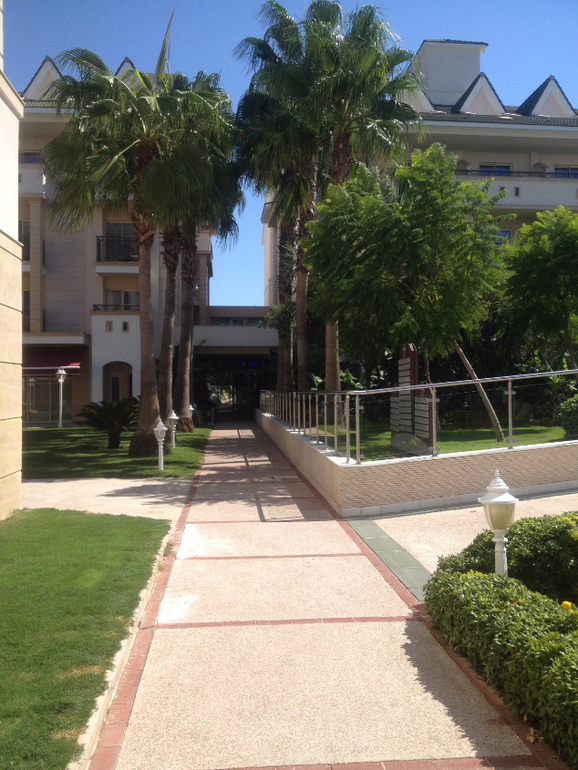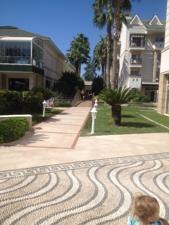 Территория отеля Путались по началу в корпусах отеля)) И лифты - куда какой ведет) Но потом спросили и быстро разобрались как и из какого попасть в ресторан, или выйти к рецепшену и т.д. и т.п. Территория небольшая и не сильно озелененная по меркам Турции, но где погулять, тенёчек - все есть. И главное, что очень понравилось - все сделано/продумано с умом. Магазины при отеле (дорого, ходите уж лучше в поселок), конференц-залы 3-4 шт, кинотеатр небольшой.