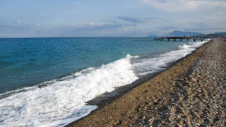 Единственный минус пляжа (об этом везде в принципе написано и я знала куда едем) - это при входе камушки мелкие и чуть крупные и дно такое не оч приятно и комфортно долго стоять. С ребенком если и кто плавать не умеет, да и просто - вопрос решаем. Идете в поселок,где отель находится (выходите из отеля, направо, получаете пропуск временный у охранника в будке, идете все время правее и увидите через 5 мин лавочки,аптеки начинаются), лучше пройти чуть дальше и налево свернуть там тоже сеть магазинов и прочего - там я нашла тапочки (у многих они) за 4$ резиновые с дырочками, вот в них очень удобно купаться и стоять. Только аккуратнее, т.к.когда вечерами волны - их снести может). Но хотя бы комфортно выходить и стоять, когда с дитем бултыхаешься в воде.