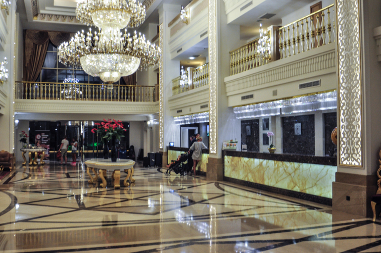 Потрясающая отделка всего отеля. Хотите смейтесь, но даже просто туалеты ваууу))) Стиль от баров до холлов -настолько все продумано, богато, стильно и красиво - невероятно просто! Хочется на кажд.углу фотографироваться! Ночью потрясающая подсветка всего, что только можно - очень романтично побродить!