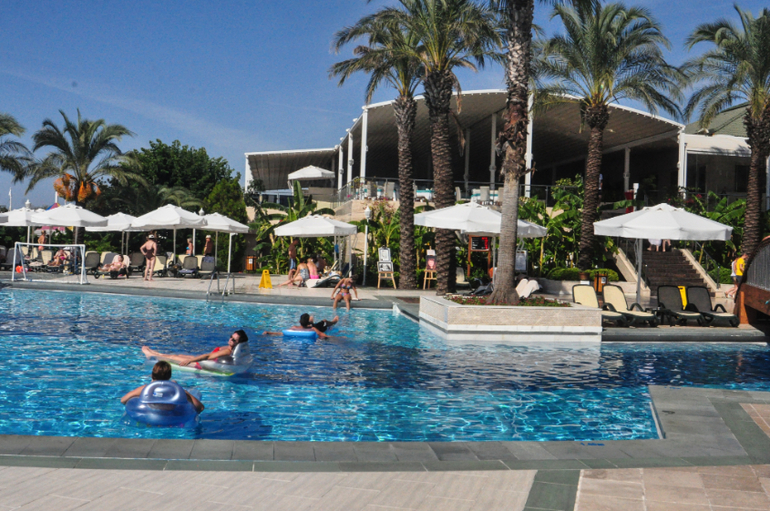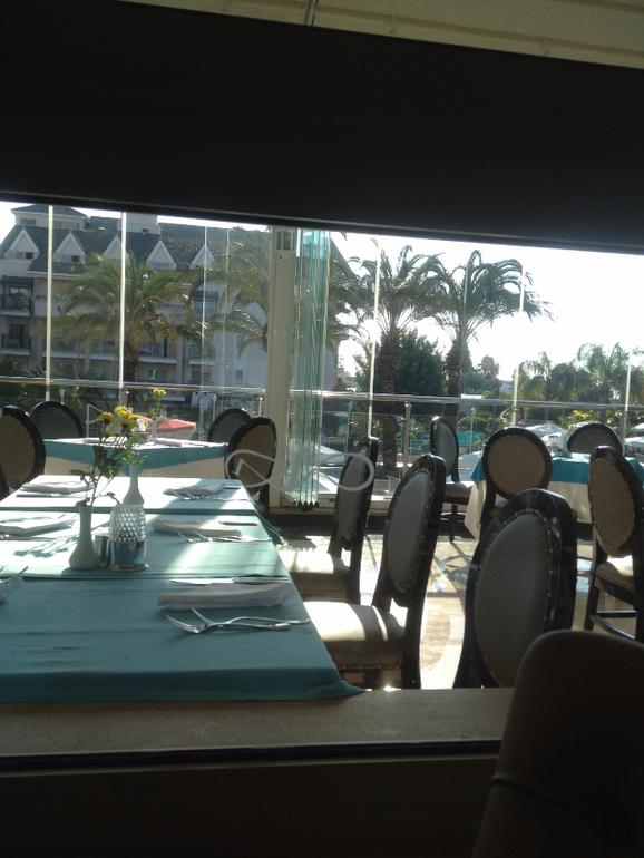 Перед выездом в отель списывалась с девочками с Гест-релейшен, мне нужен был номер выше первого этажа и самое главное не в шумном месте (т.к.ребенок). Ну, и вот только был единственный мини-минус за весь отдых: номер дали, на 4 этаже, да как просили повыше, (с коляской норм, т.к.весь отель оборудован везде лифтами - здесь проблем с передвижением не было). Но само место….т.к.мы приехали вечером, то хотелось конечно посмотреть номер, хоть и уставшие были с дороги, но сотрудник с рецепшена достаточно с напором сказал, что номер гут и т.д. и т.п., ну мы не стали спорить и пошли смотреть - номер 1772. У нас был забронирован Фэмили Рум. Комнатка на 2 разделена, небольшая, но места достаточно, если не проводить в номере все время). Туалет и ванная - одна комната. Как входишь - столик небольшой, под него чемодан отлично влазиет, вещи какие-то с пляжа закинуть можно, две раздельные кровати, между ними тумбочка и 2 ночника (свет ооочень яркий). Потом маленький коридорчик, в нем шкаф большущий, вещи повести и сложить можно, чемоданы не влезают в него, только рюкзаки, сейф (на нем ложка для обуви, губка, набор иголок и ниток), и потом еще комната с двуспальной кроватью средних размеров, по бокам тумбы, одно кресло, большая тумба с информационными записками (в ней мини-бар, пополняли регулярно водой простой, соками, газирован.напитками и пивом Efes), мус.бачок, на тумбе ТВ (русские каналы 1, НТВ,СТС, второй канал, есть каналы иностранные с детскими передачами и мультами, кажется 16,18 каналы)). И балкон. Балкон на 4 этаже все закрытые, т.е сидеть вечерами и любоваться окружающей обстановкой не получится, нужно вставать, чтоб увидеть море и прочее. Вид из номера 1772 у нас был на часть моря, горы и дачи турков.