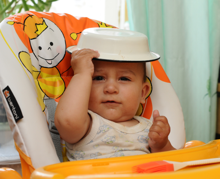 Перевертыши. Поставьте перед малышом перевернутое вверх дном ведерко, баночку или тарелку. Начать лучше всего с одной вещи. Покажите, как поставить правильно. Теперь побуждайте малыша самостоятельно переворачивать «неправильно» поставленные предметы. Если у ребёнка не получается сразу понять задачу - помогите ему, покажите ещё раз, что должно получиться.