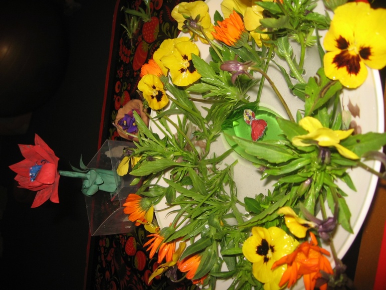 На ночь читали сказку маминого сочинения о том как появились цв.феи. По ходу сказки постарались понять, что такое роса. Дальше Лида рассматривала карточки, а я читала ей стихи про цв. фей и их песни. Потом попробовали определить характер цветов. Лида сказала, что роза и гвоздика царственные, подсолнух грустный, а ромашка добрая и простая.