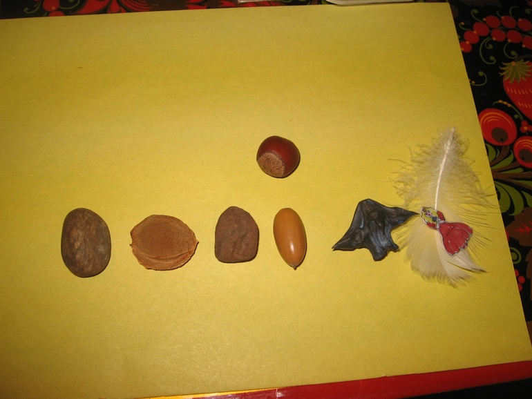 Потом я напомнила, что Дюймовочка «легче перышка». И предложила поэкспериментировать. С помощью собственных ощущений и самодельных весов мы сравнивали предметы по тяжести: Дюймовочку, перышко, камешек, желудь.