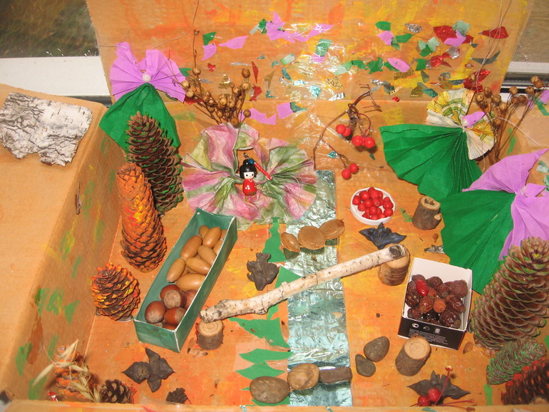 Так что игра еще не окончена. У нас еще разрезные картинки, раскраски и куча планов (например дочке захотелось устроить бал с нашими феями и Феей Осени. Фея Осени должна быть непременно в золотом наряде. Сейчас пока я пишу отчет дети с папой сажают цветы на цветочной поляне из леговского конструктора. Я предложила дочке сделать крылышки для Дюймовочки, но она возразила: мама, ей же еще лететь и лететь! И еще мы не успели посмотреть фотографии (как выглядит мир глазами Дюймовочки. У нас сказка продолжается!