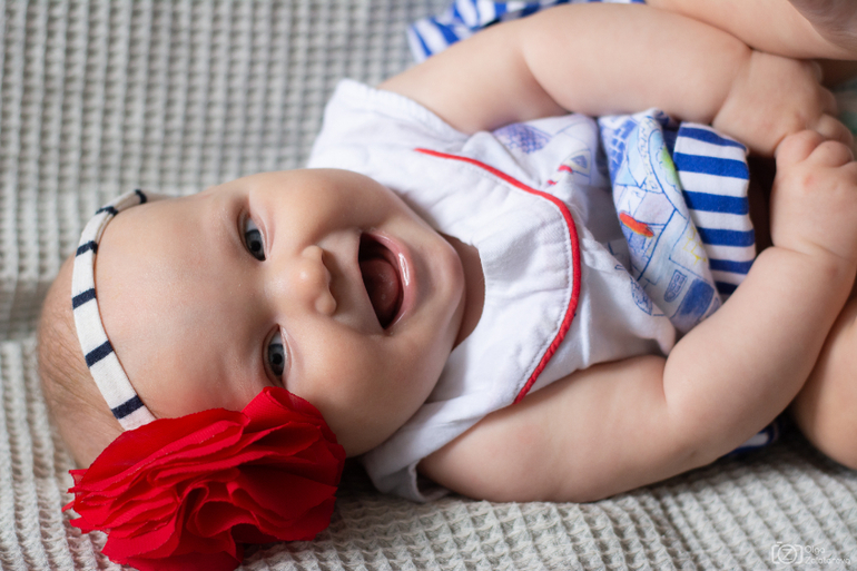 Положите малыша на пеленку животом вниз. Возьмите пеленку за край справа и приподнимите её. Малыш перекатится с живота на бок, а затем на спину.