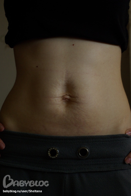 Хвастаться особо пока нечем. К сожалению, мышцы обратно уже не сойдуться, но можно приложить усилия и привести живот в более-менее приличный вид, поухаживать за кожей.