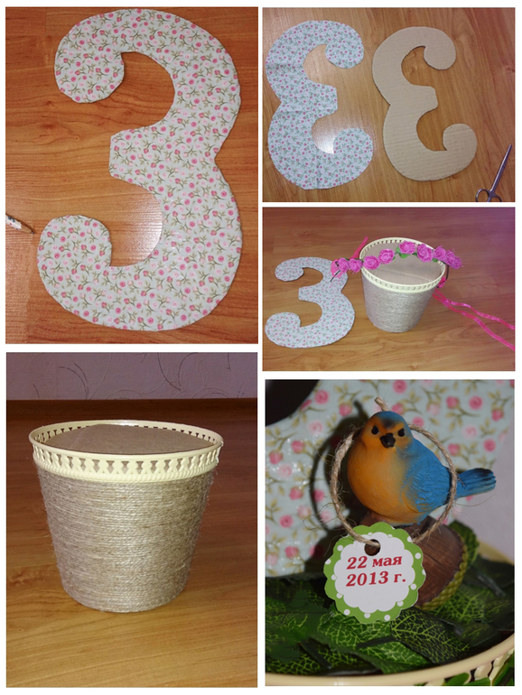 20. Отрезать 3 кусочка шнура, их концы завязать аккуратными узелками, а другие концы сшить вместе и пришить к основанию листьев.