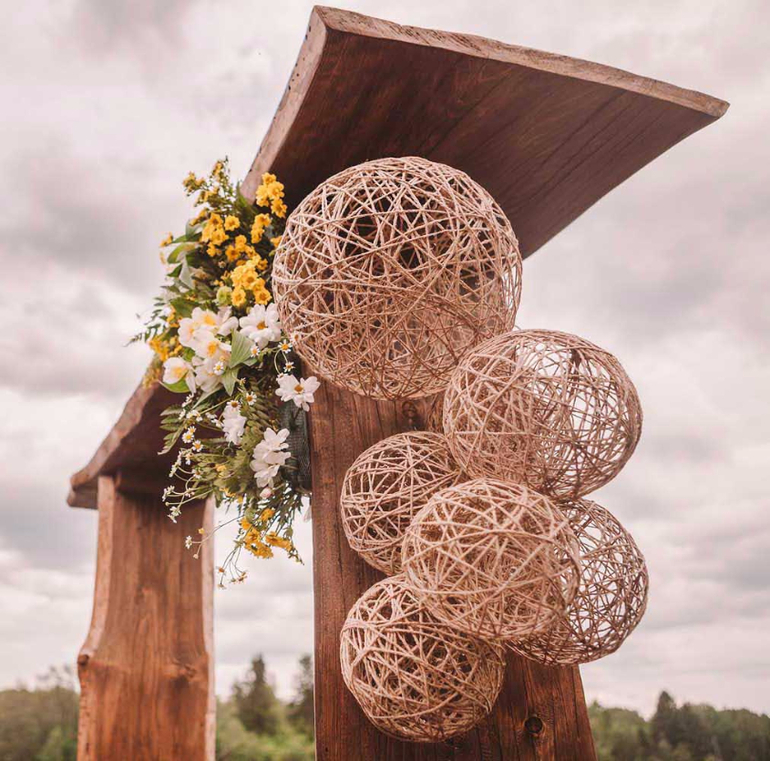 9. В верхней части каждого белка с помощью шила или спицы проколоть дырочку, вставить туда кольцо фурнитуры и зажать плоскогубцами.