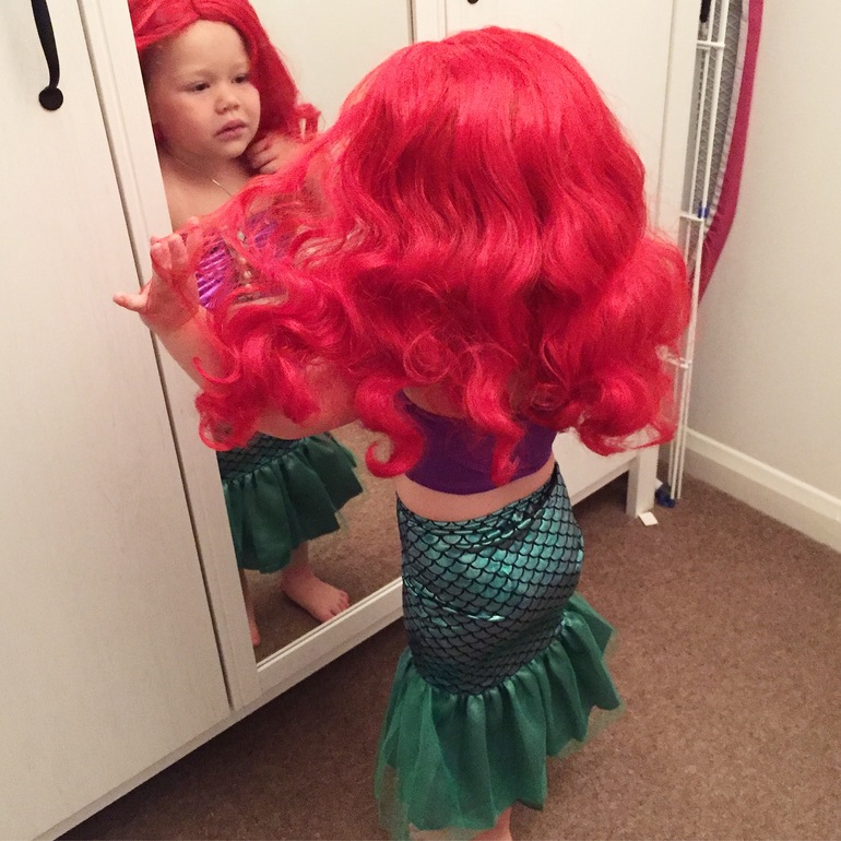 На Новый год Деду Морозу моя дочка еще летом заказала хвост русалки :) Дед Мороз не подвел и хвост, конечно, принес. После Нового года ни дня не проходит, чтобы дочка не нарядилась русалочкой. И хотя мультик она смотрела один раз летом во время одного из перелетов, прекрасно его помнила. Вообщем, спонтанно, но я решила добавить немного волшебства в будни и погрузить ее в подводный мир