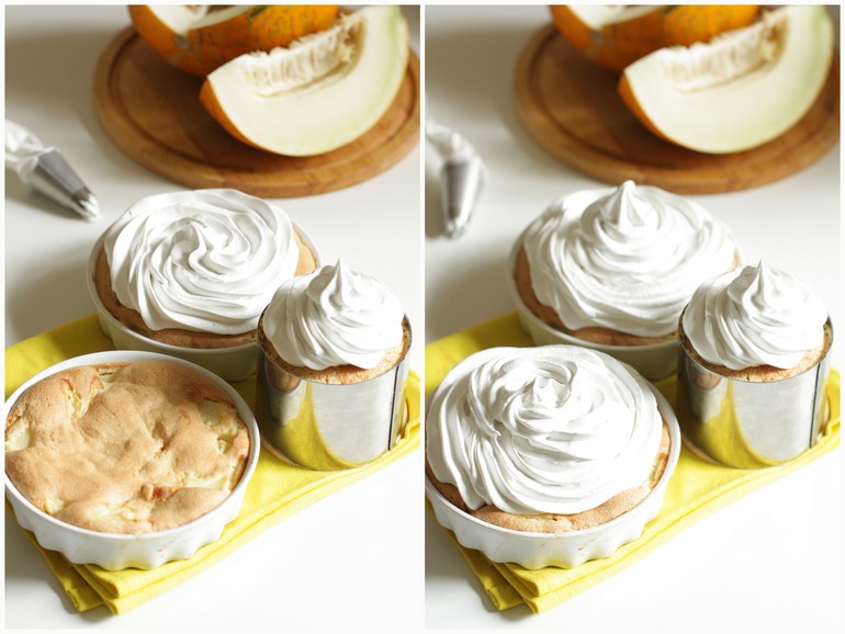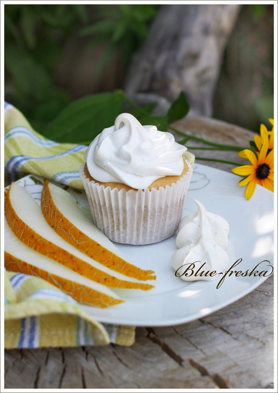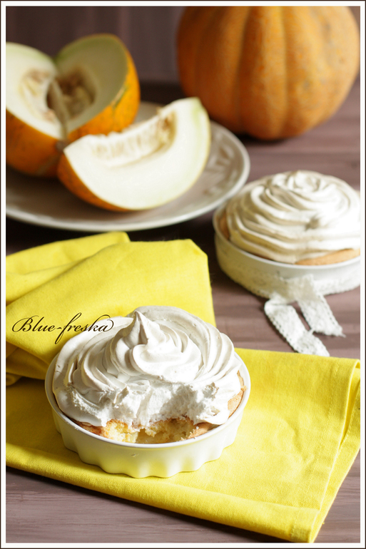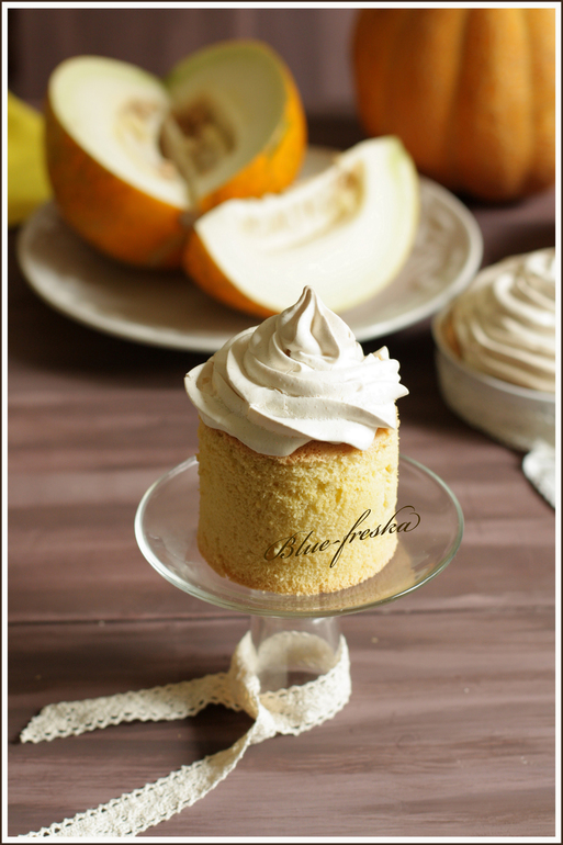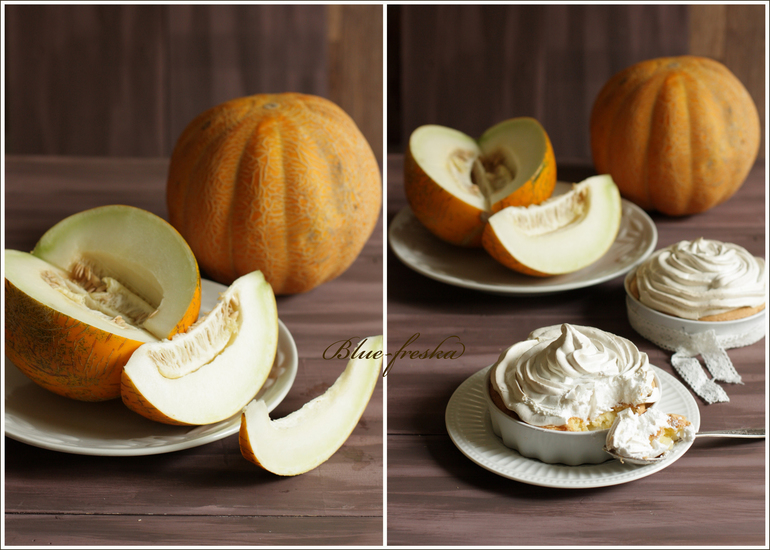 На каникулах у бабушки пекла замечательные бисквитные капы с дыней, аля шарлотка, под нежной меренгой, так и задумывалось название поста.Попробовать толком не удалось, рот себе зашила, мужа ждала из Москвы, срочно нужно было постройнеть)) Вернувшись домой захотелось повторить и оторваться