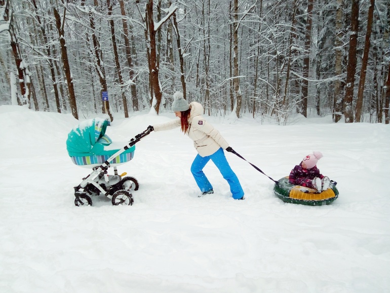 С первой дочкой была коляска 2в1 и трость, потом велосипед. Но были моменты когда нужно было метнутся быстро и без транспорта, в такие дни я использовала эргорю
