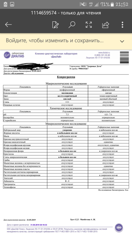 Девочки, помогите, пожалуйста, разобраться! Ребенку 4 месяца, почти с рождения на ИВ, были смеси: Симилак, Семпер Бифидус, Нутрилак- страдали запором, использовали Микролакс. Пошли к гастроэнтерологу, по анализам постпавили вторичную лактазную недостаточность ( углеводы были 0,40) и рекомендовали Нутрилон пепти гастро. У ребёнка начался понос, пропили Энтерофурил, но после завершения опять на этой смеси понос и сильно срыгивает. Углеводы стали 0,75, хотя смесь гидролизат.Назначили Нормобакт L. Не знаю уже какая смесь на самом деле нужна малышу, чтобы наконец-то был нормальный стул, измучили и его и себя. Врач то инфекцию подозревала, то про ллактазную недостаточность винит.Вдруг кто-то прнимает в анализах. Помогите пожалуйста!