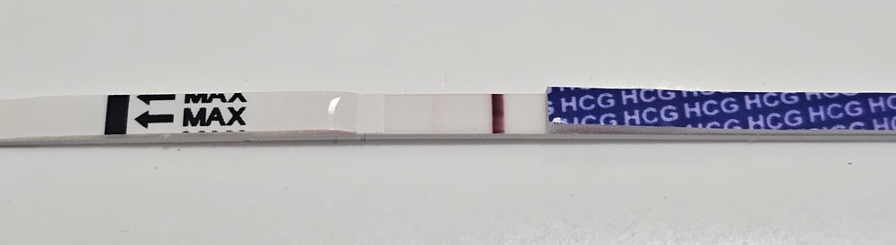 Задержка 2 дня, сделала тест фирмы Femitest, показал слабую полоску (?) утром с первой мочей.