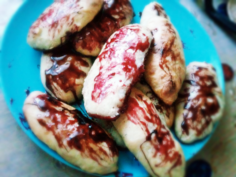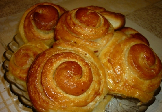 Потом, когда тесто поднялось, его остается только раскатать, добавить начинку и в духовку на 15-30 минут на 200 градусов.
