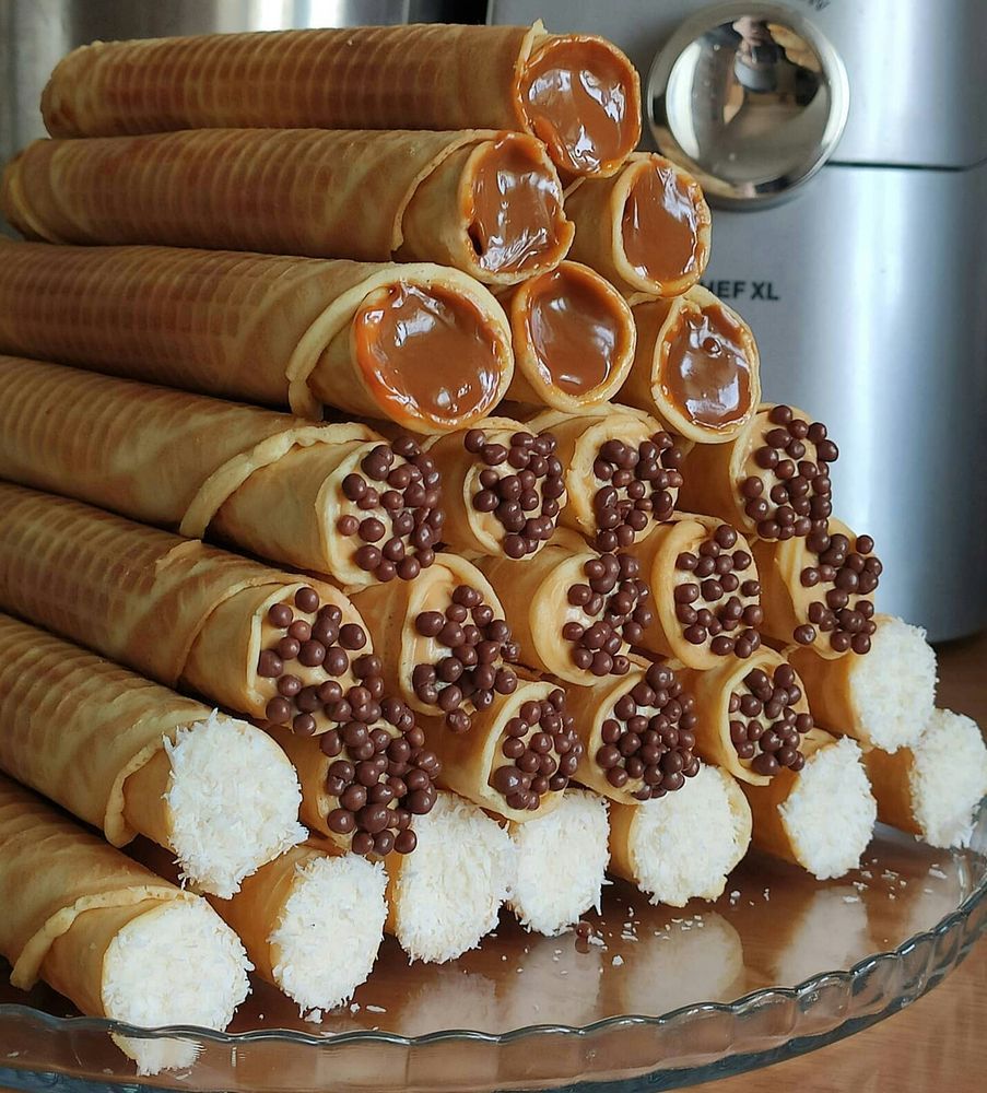 Давно забытый вкус)Вафельница есть,да я про нее забыла.Сынуля попросил трубочек,а я состряпала .Получилось вкусно,как в детстве)