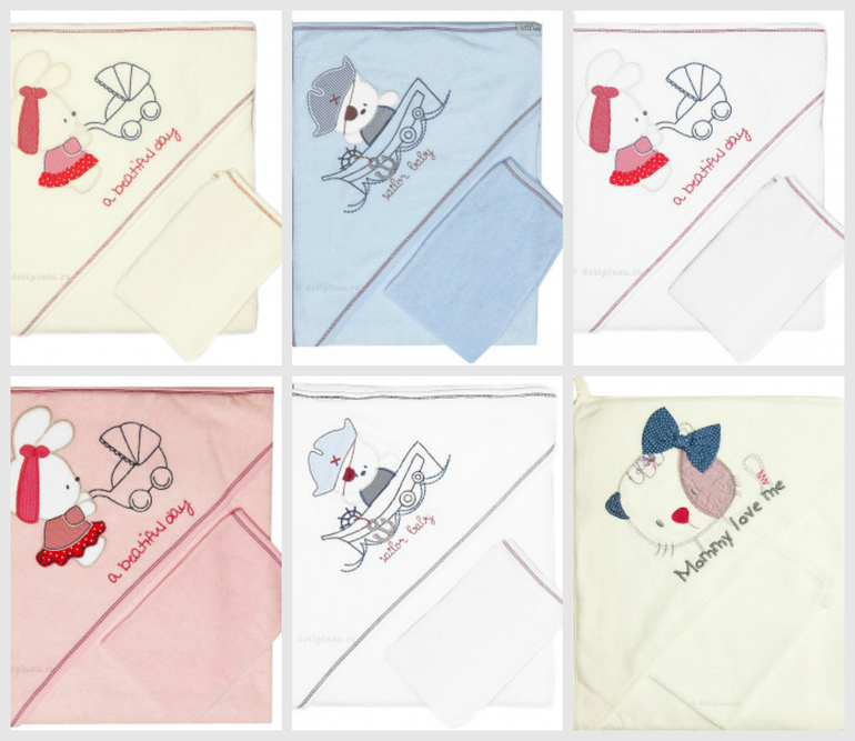 1. Полотенца Aziz bebe махровые с уголком и рукавичкой для купания ребенка - 600 руб. (размер полотенца 90 х 90 см, рукавичка 21 х 13 см) Турция. 2. Махровые полотенца ЕКО с уголком - 500 руб. (размер 100 х 100 см) Польша.