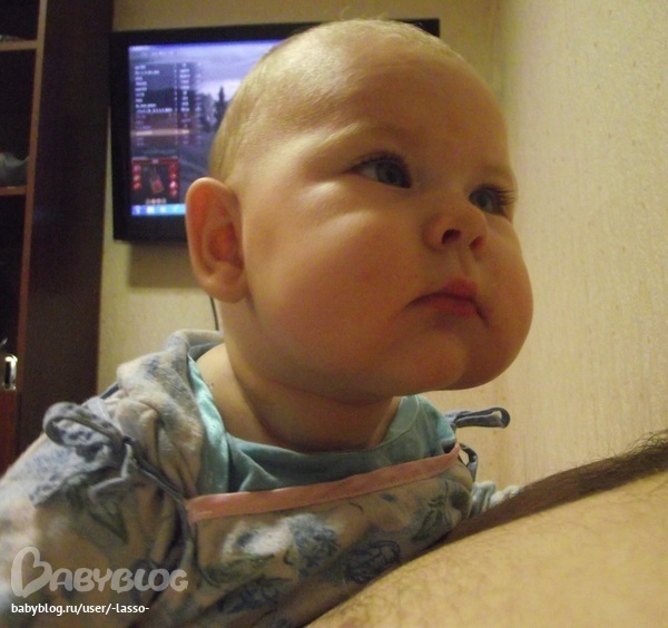 вся в тыкве.с папой пюре ели)) из за щек ушей не видно.