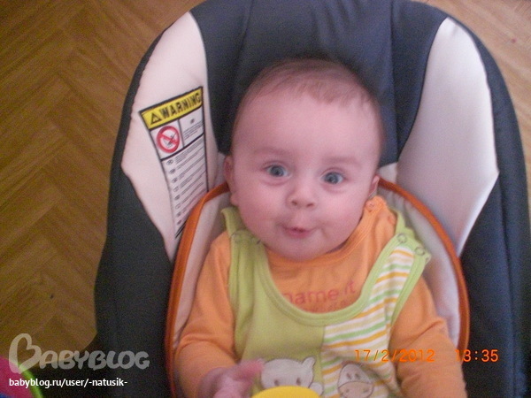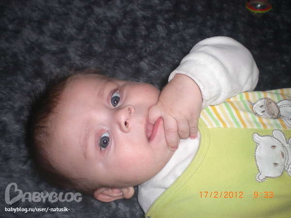 Что мы умеем делать в 4 месяца? Да по сравнению с другими практически ничего. Как почитаешь у других, так у всех дети вундеркинды какие-то.Иногда даже думаю, а все ли нормально с моим ребенком, ведь другие детки, даже младше нас уже такие развитые, а мы еле еле переворачиваемся на животик сами и полежим минутку две, а потом плачим. Назад сами даже не думаем переворачиваться.Оттолкнуться от маминых рук хватает сил только пару раз, а потом плюхаемся носиком.правда умеем держать погремухуи лопатим ими об себя что есть силы.Сосем кулак.Научились кричать. особенно хорошо получается маме на ухо. Почему-то не плачет, а орет.Ну и хохочим когда мама дует в шею или животик. вот собственно и все наши достижения.