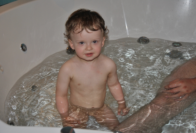В номере была отдельная комната джакузня. Она заменила нам привычную ванную для вечерних Яромиркиных купаний. Сначала он очень настороженно отнёсся к данному сооружению, но вскоре стал получать удовольствие. Сидящий в джакузи папа следил, чтобы сын не подскользнулся, разыгравшись.