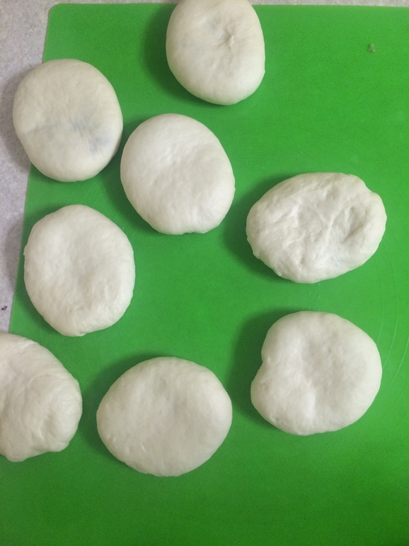 Разделить тесто, скатать шарики. Шарики размять руками в лепёшку , в серединку положить столовую ложку фарша. Фарш - лук, говядина-свинина, черный молотый перец, соль. Для сочности всегда добавляю холодной воды в фарш. Распределить по лепешке, сформовать беляш.
