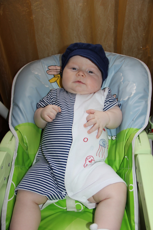 Улыбаемся и в этом месяце научились смеяться в голос (звук правда малость глухой, но это в сравнение с Андреем). Заливисто смеется, когда делаем зарядку.