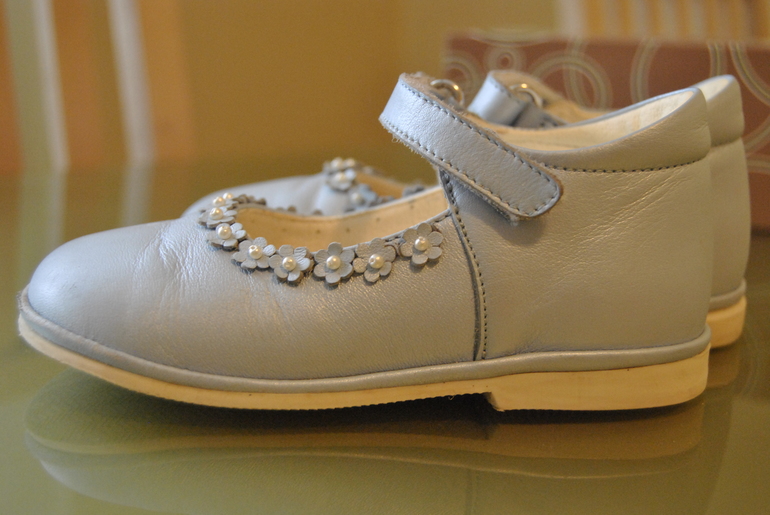 Предлагаю милые туфли перламутрово-голубого цвета. Верх натуральная кожа, подкладка натуральная кожа. Размер 24. Фирма Glole ecologiche Италия.