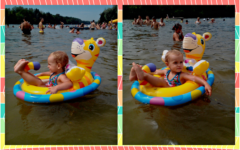 Лето прошло продуктивно))). Два раза выезжали на базу отдыха.Из речки вытянуть не реально.Ни чего не боится,глубина ее не пугает.