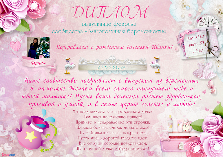 12 февраля в 11-30, путем ПКС появилась на свет наша доченька!!!!!!!!! Вес 3150 кг, рост 53 см. Безумно люблю свою малышку !!!!!!!!!!!!!