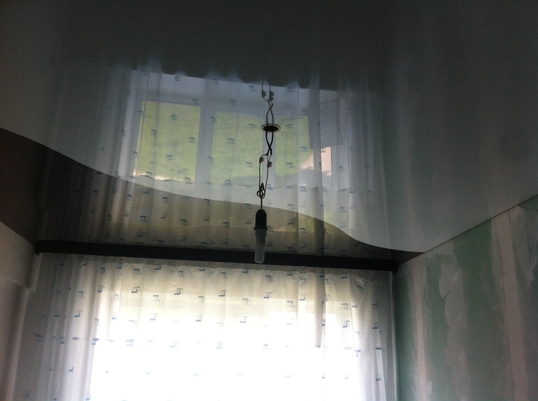 Потолок на фото не видно -черная ткань на одной стороне 2,5м на другой 1м-то есть идет на убыль)