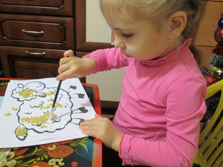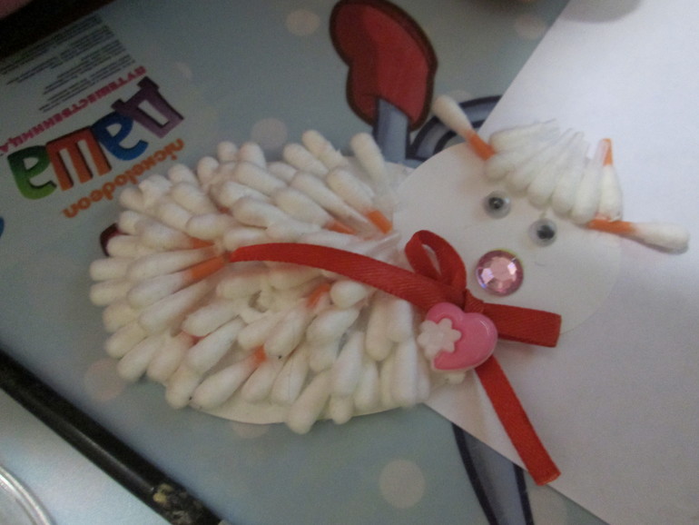 Символ года "Овечка". Так как днем ранее мы сделали почтовый ящик...нам Дедушка Мороз прислал письмо в котором попросил Аришку и Маюшку сделать символ года...а за это он под елочку подбросит подарочки...) Девченки не сопротивлялись тем более что творить они любят...