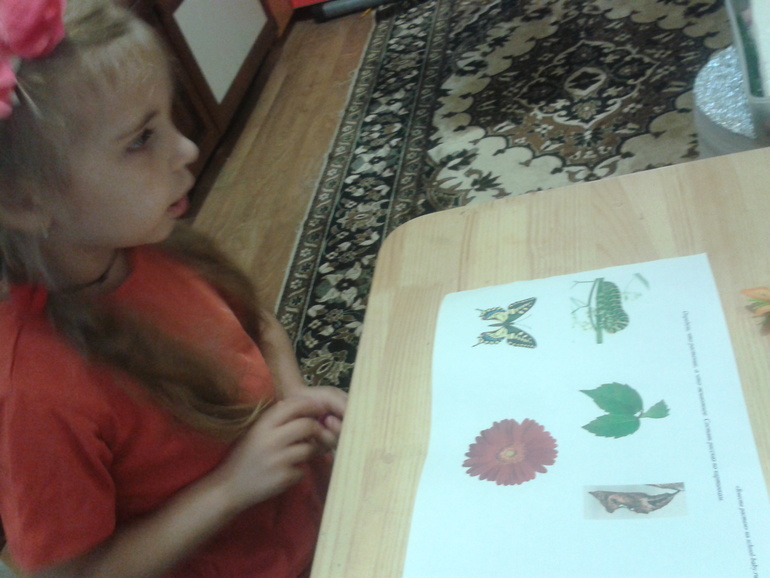Определили что на картинке живое, что нет...придумали очень интересную историю, нашли пару каждому крылышку, внимательно рассмотрели и обсудили жизненный цикл бабочки...