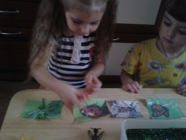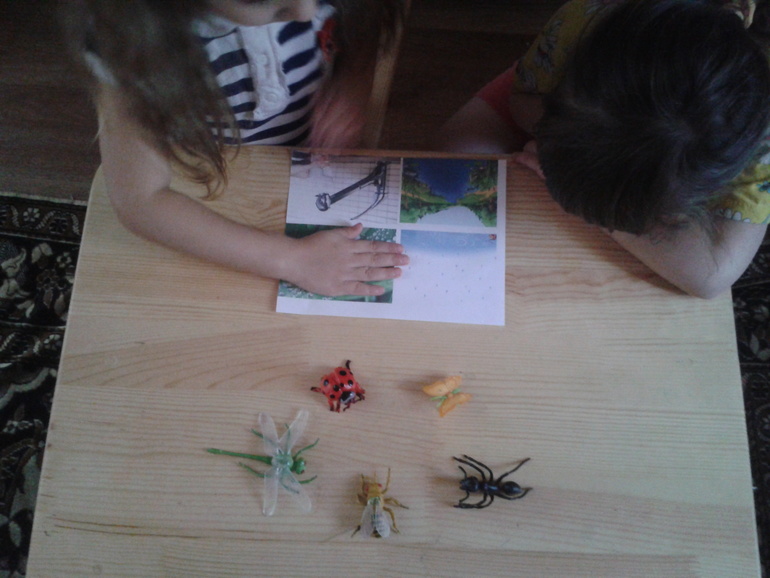 Но когда с пчелкой произошли неприятности, она собрала своих друзей чтобы они помогли.....Обсудили кто из друзей не похож на пчелку и почему (что с ним не так) Аришка молодец, сразу выделила муравья и сказала что он "вообще то не летает"