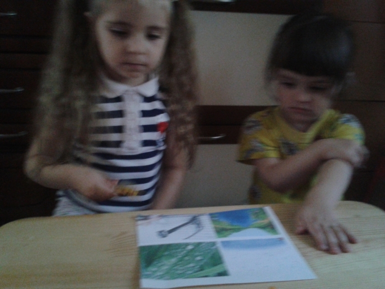 НО друзья так растерялись, что не знали как помочь бедной Жужже....но Аришка вызвалась помочь и сказала что в лес где живет пчелка "нужно срочно отнести кран, я сейчас принесу" и уже подскочила с места, но я остановила ее (боюсь предположить как бы она его перла...) и спросила "а если вода будет литься с неба?" Аришка закричала "точно пусть пойдет дождь и крылышки помоются" Дальше девочки помогли вымыть пчелке крылышки и она смогла полететь...