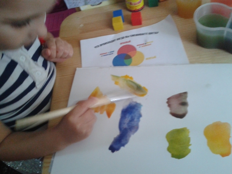 После увлекательной прогулки мы сели немного творить....и решили создать цветной нектар, но у нас оказалось только три цвета краски...Ариша немного расстроилась, но я ее быстро успокоила и мы увлеклись созданием разного нектара надолго) Сначала смешивали краски в стаканчиках, затем на бумаге...