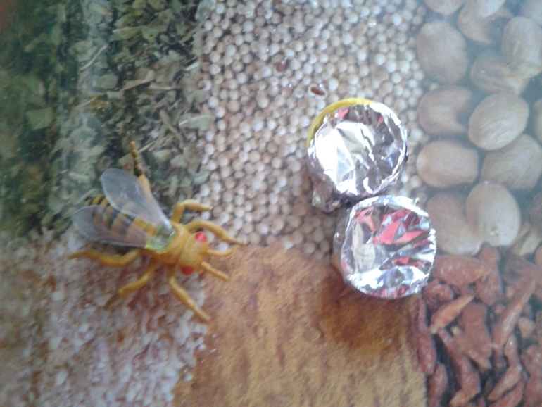 Когда нектара было МНОГО, его нужно было отнести у улей, но куда же его девать? не на пол же складывать....мы построили соты...и разместили на них нектар.