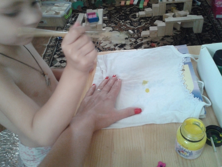 А еще мы были дизайнерами и создали майку ручной работы....А самое главное неповторимую, в единственном экземпляре...)
