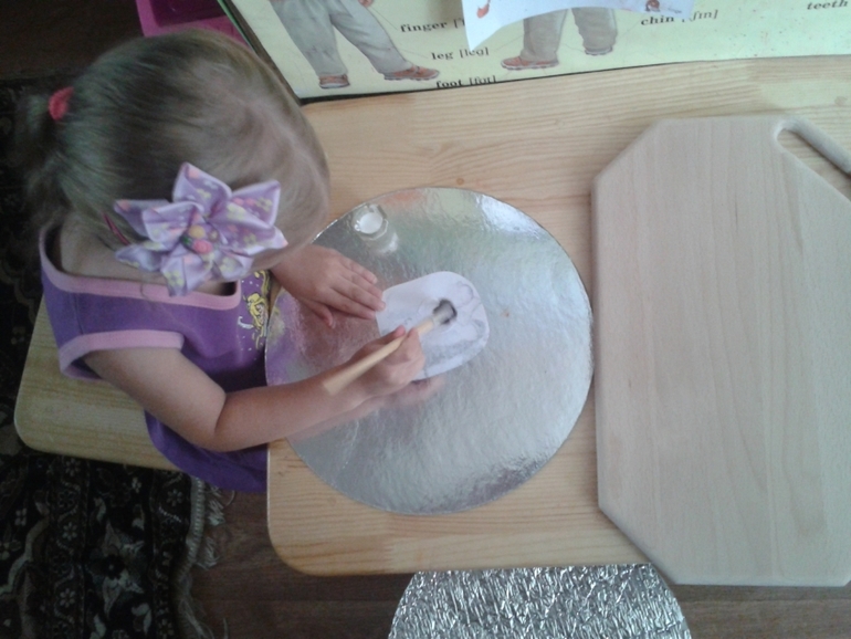 Когда папа принес Аришке деревянные брусочки, маме он принес доску разделочную, и мы с дочей решили что доска красивая, только ее стоит немного украсить...Сказано-сделано...