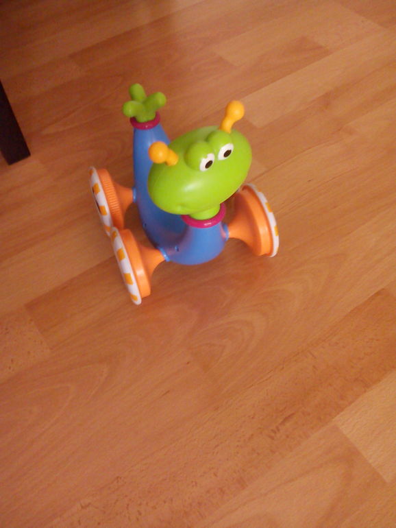 Улитка. Нажимаешь ей на хвост она играет музыку и катится. Её весело догонять