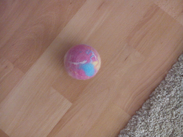 Мячик-погремушка из шерсти. Его весело кататься и трогать