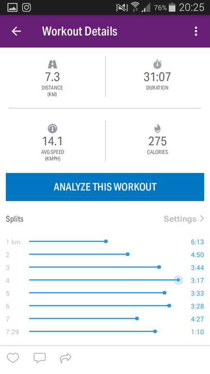 я по велодорожке в основном ехала, но я много тестировала переключения скоростей по дороге и новую покрышку :) обычно медленнее 20-ти я не езжу даже с Эриком :)
