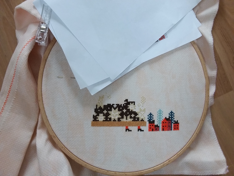 Хранители кофе. Схему и нитки купила, основу покрасила кофе, осталось только вышить 😂