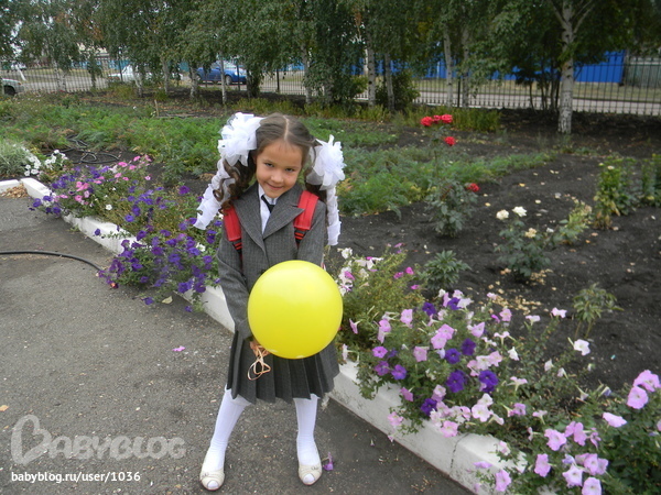 Чуток фото. Велели не приходить на линейку в портфелями, а Тасе так хотелось похвастаться, ну, ничего еще будет время)))