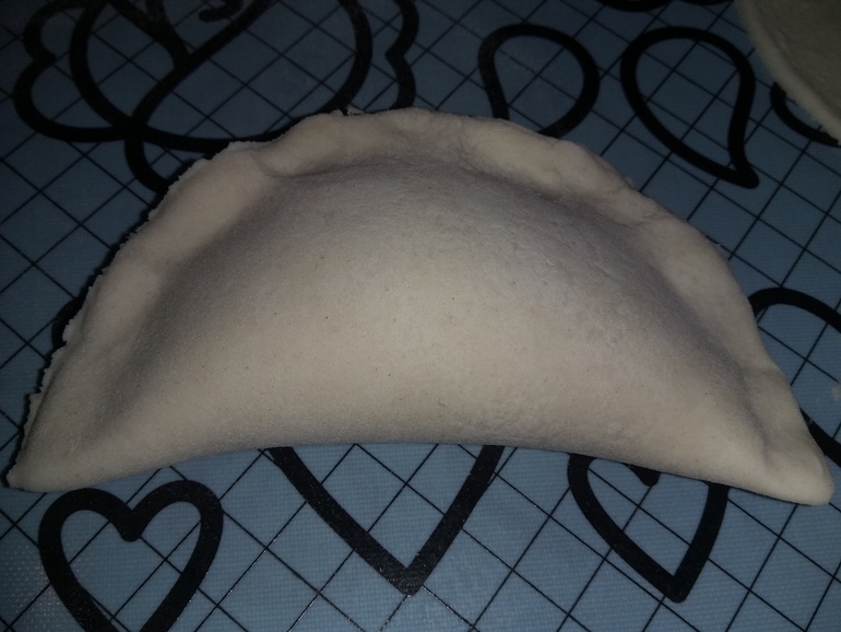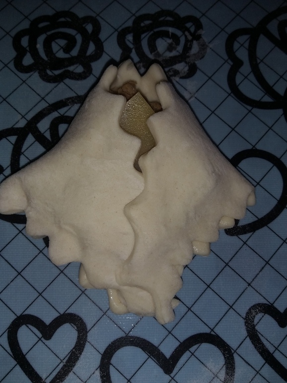Слепить сначала как пельмешку. Не старайтесь плотно соединять, поцелуйчик должен раскрыться: