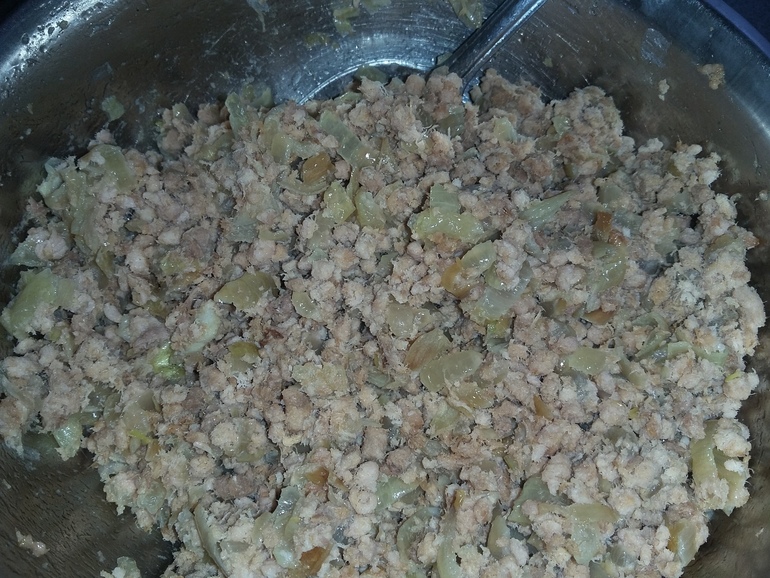 Мясо (отварное или тушеное) провернуть на мясорубке: