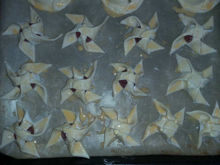 В этот раз у меня ореховые поцелучики и вертушки с мармеладом и пастилой, "пиджачки" с мясом и сыром.