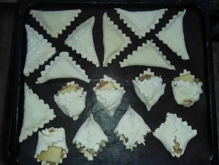 Можно и обычные треугольные пирожочки сделать, если боитесь, что сыр вытечет: