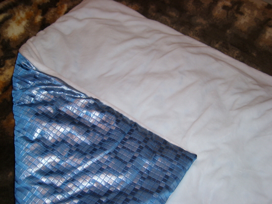 Очень классненько! Я кстати тоже сегодня закончила эпопею с одеялком. Само одеяло сама стегала с холофайбером, а пододеяльник - мех коротенький с одной стороны и жаккард синенький с другой. Но у меня так аккуратненько в конвертик не складывается, как у вас.Наверно я сильно пышное его сделала.