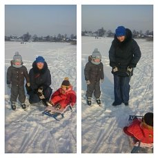 С детками на озере отдахнули просто супер. Старший катался на коньках, а младшую на санках, но как только ей показали лед. Она с него уже не сходила. Они были так давольны. Надо на выходных еще собраться сходить. Муж и меня на санках покатал. Детство вспомнила. Так здорово. Еще хочу