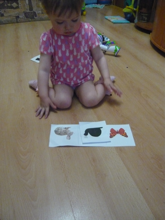 Лото теней. Чаще Анфиса раскладывает обычное лото (с которым легко справляется), а вот теневое лото редко предлагаю (у меня нет материала, ПОДЕЛИТЕСЬ. Можно и контурное, всякому будем рады).